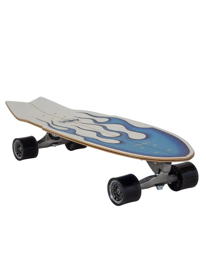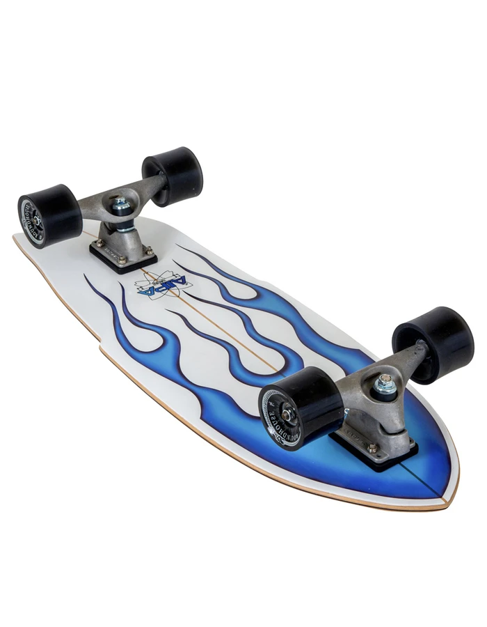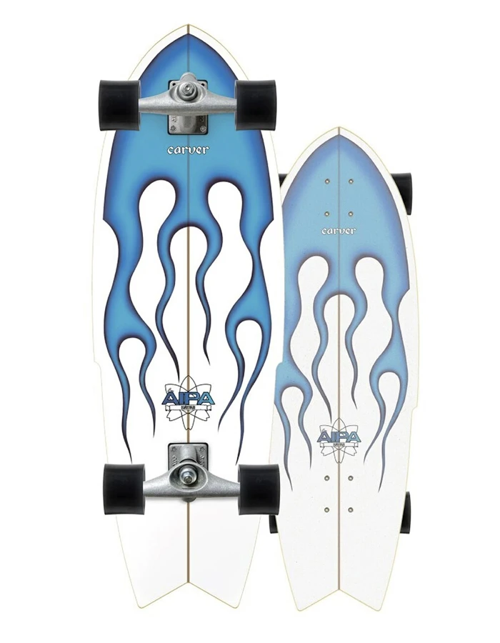 In 1974 Ben Aipa, the legendary Hawaiian surfer and shaper, made his mark in surfboard history with the development of ‘Da Sting’, a quick-turning shape he first made for Larry Bertleman. “I would watch him at the Lighthouse for a moment, and I could see what he was attempting to do… I knew he was the future, so I went back to the shop and imagined the kind of board dynamics he’d need to get the maneuvers he was attempting” Ben said.How perfect then that we would collaborate with the Aipa family to make a Carver surfskate model that also achieves the same quick turning, fast pumping maneuvers we pioneered for skateboards in 1996. The clear sugar coat grip shows off the classic blue flames, one of the most iconic airbrush designs in surfboard history.