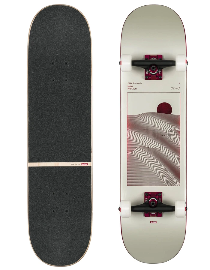 Featured art and aesthetic details on the best complete money can buy. The G2 Parallel Complete 8.0″ in Off-White Foil/Horizon deck is constructed from Resin-7 hard rock maple with full concave and red foil deck art. This styles features 5.25″ Tensor hollow kingpin trucks, 53mm Conical 101a wheels and split black grip tape.
